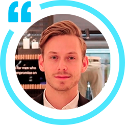 "Jeg er selv blevet snydt på nettet. ...Jeg synes, at det her Sikker Shopping fra e-mærket er sindssygt godt. Fordi det gør, at kunderne kan købe et produkt og være 100% sikker på, at der hvor de køber fra, det er en legit hjemmeside. Og det gør, at man ikke skal være bange for, hvor man handler henne."